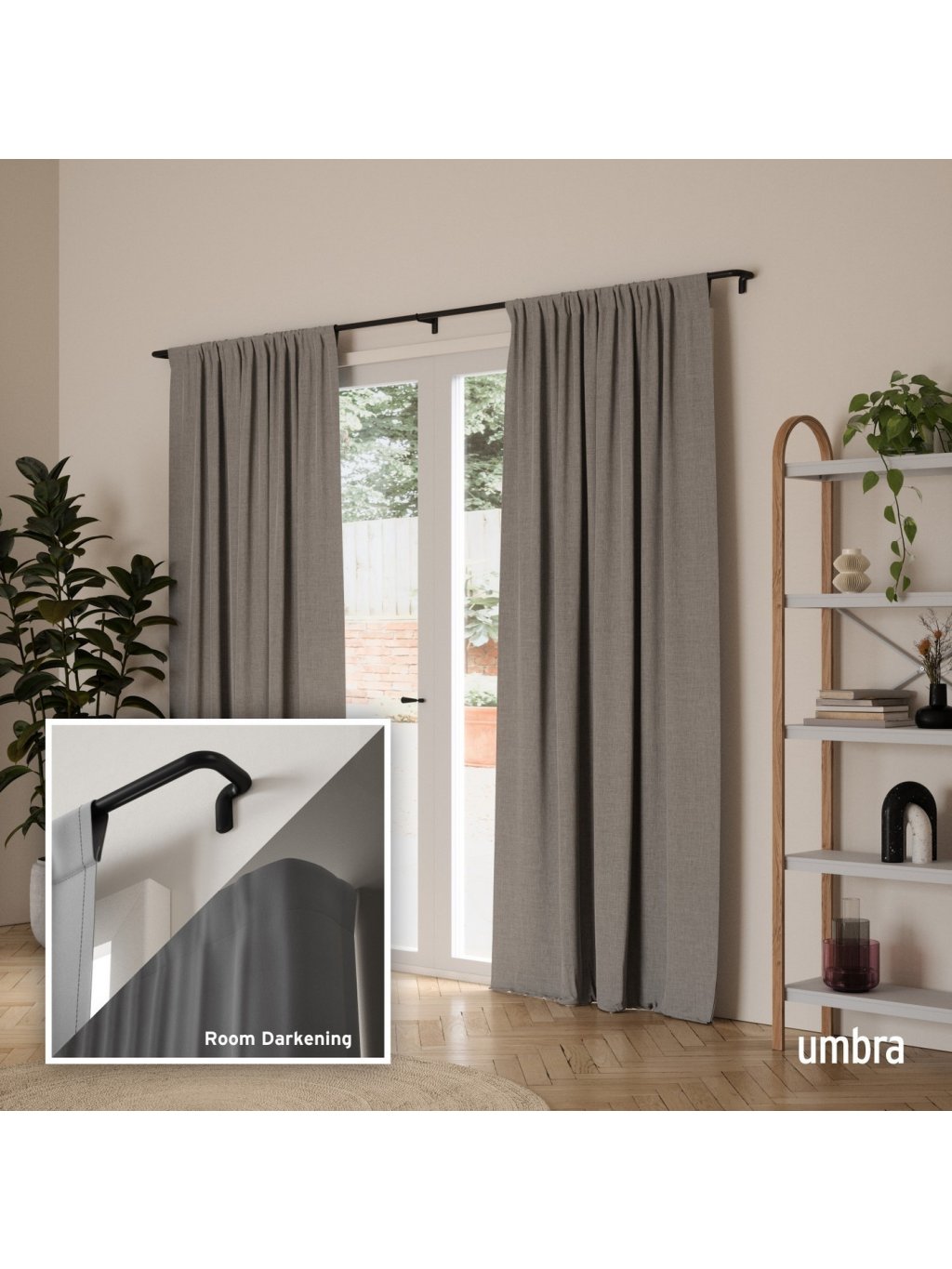 Umbra Twilight garniža je múdre riešenie, ak chcete obmedziť prenikanie svetla do miestnosti. Vďaka špeciálnym koncovkám, ktoré vedú záves tesne pozdĺž steny, efektívne blokuje lúče svetla po stranách. Minimalistický dizajn sa hodí do každého interiéru a teleskopická konštrukcia umožňuje ľahké prispôsobenie šírke okna.