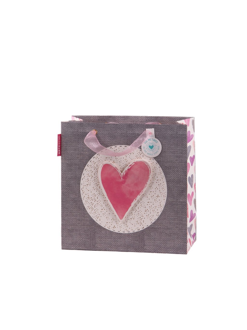 Darčeková taška 3D 25x25x11cm Artebene Heart Pink Grey