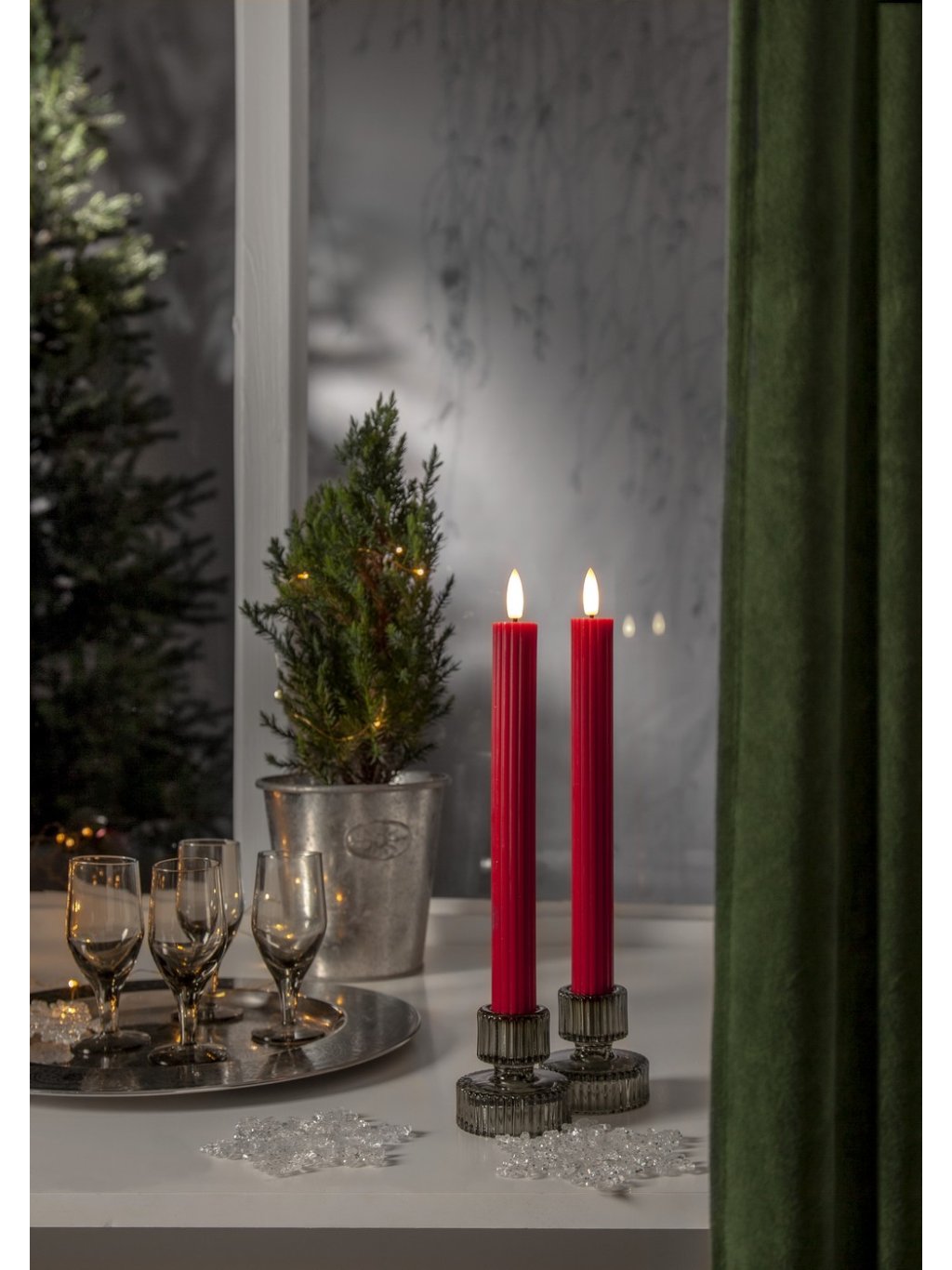 LED sviečka 2 ks výška 25 cm Star Trading Flamme Stripe - červené