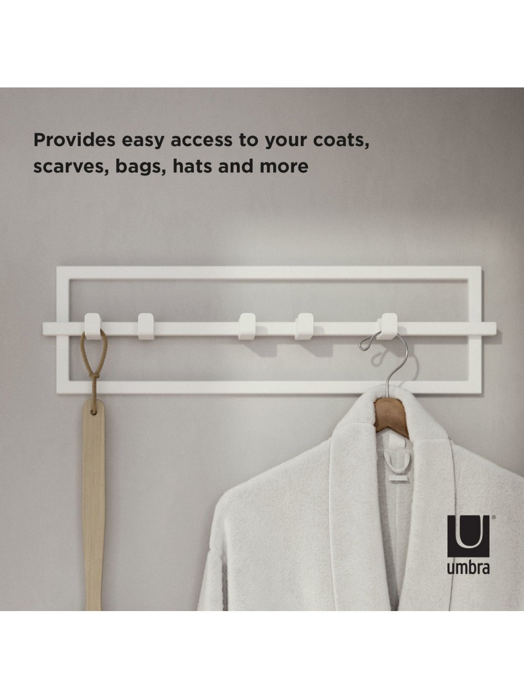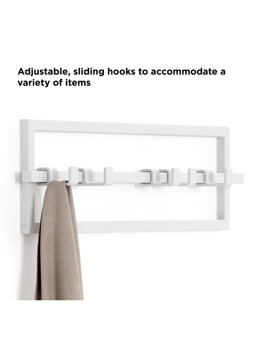 Umbra Cubiko 5 Hook je praktický a dizajnovo čistý vešiak, ktorý dodá vášmu interiéru moderný a prehľadný vzhľad. Päť posuvných háčikov na kovovej lište umožňuje prispôsobiť rozostupy podľa potreby, takže ľahko zavesíte kabáty, šály, tašky alebo doplnky bez stláčania či zamotania. Háčiky sú nekĺzavé a šetrné k látke , takže nepoškodzujú odevy. Vďaka jednoduchej montáži sa Cubiko hodí do predsiene, spálne, kúpeľne i kancelárie a pomôže vám udržať poriadok s eleganciou. Je vyrobený z odolnej ocele s ekologicky šetrnou povrchovou úpravou, ktorá znižuje spotrebu vody a odpadu pri výrobe o 85%.