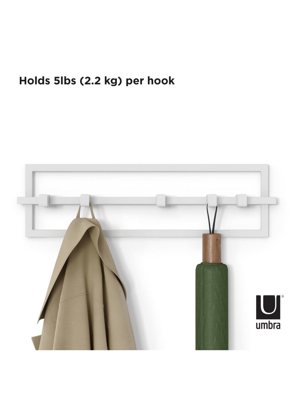 Nástenný vešiak 5 háčikov Umbra CUBIKO - biely