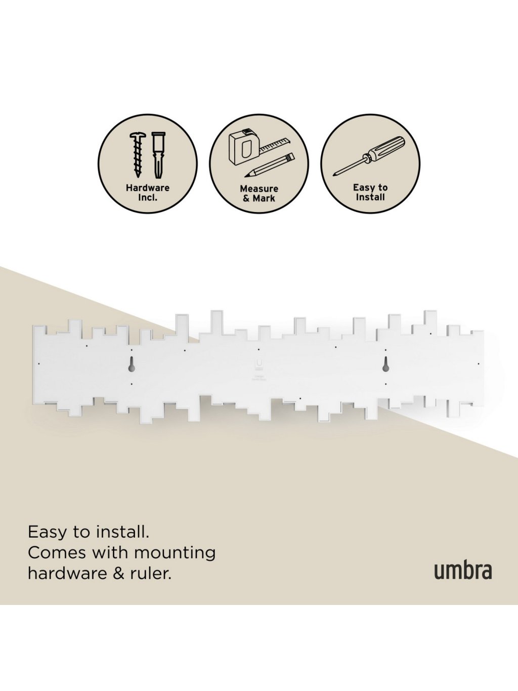 Umbra Sticks Multi Hook je dôkazom, že aj praktické doplnky môžu byť skutočným dizajnovým prvkom. Tento originálny nástenný vešiak na prvý pohľad pôsobí ako moderná socha alebo dekorácia, až pri bližšom pohľade odhalíte jeho premyslenú funkciu – osem skrytých háčikov, ktoré sa ľahko vyklápajú podľa potreby. Každý z nich unesie až 2,3 kg, a keď nie sú používané, elegantne splynú s povrchom vešiaku a vytvárajú čistý, minimalistický vzhľad.