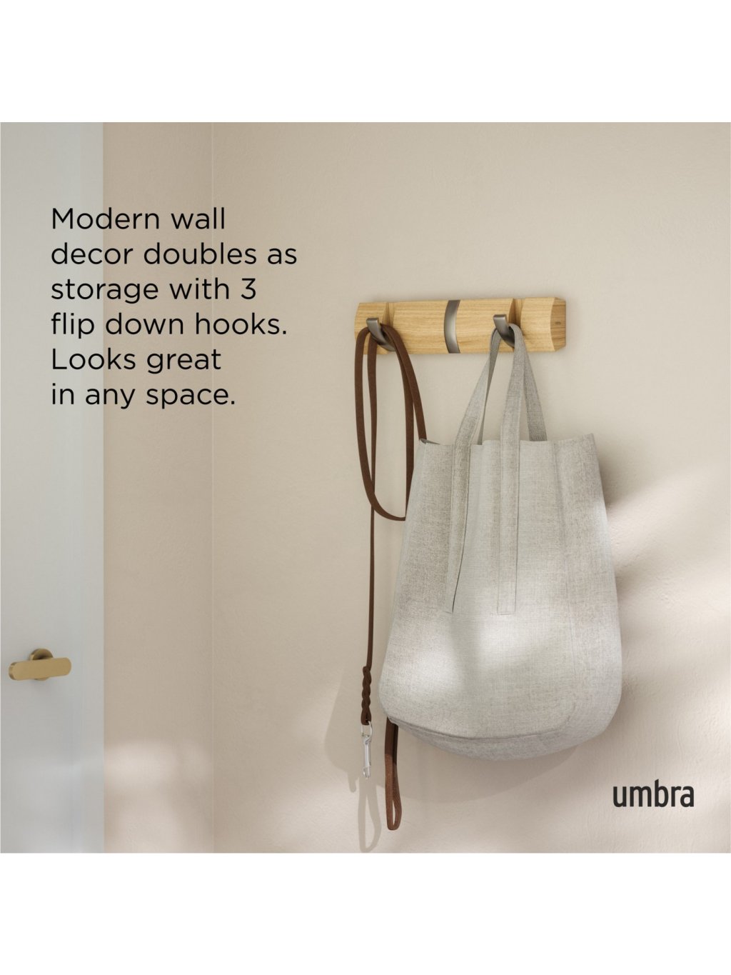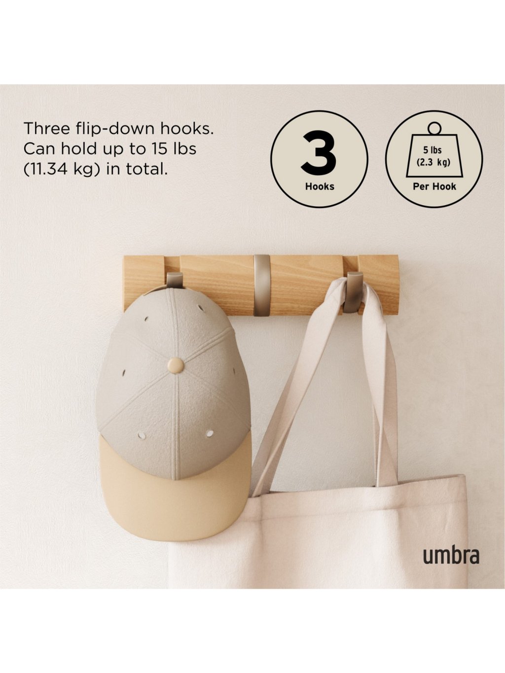 Nástenný výklopný vešiak s 3 háčikmi Umbra Flip - prírodný
