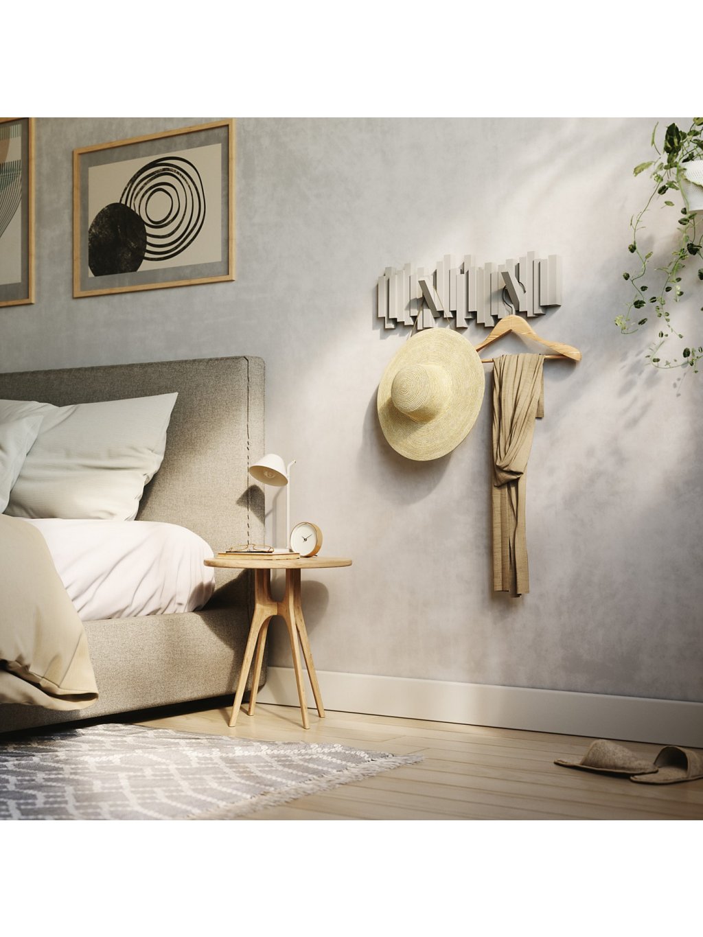 - Dizajnový vzhľad – vyzerá ako moderná nástenná plastika, ale slúži ako plne funkčný vešiak
