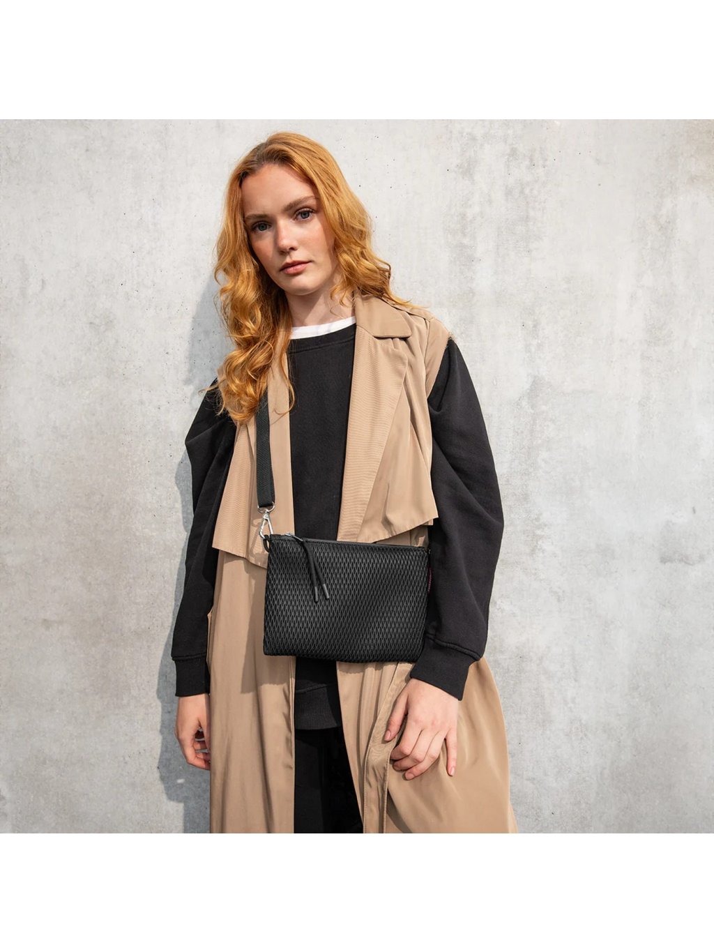 Vďaka odnímateľnému a nastaviteľnému ramennému popruhu ju môžete pohodlne nosiť cez rameno alebo ako klasické puzdro. Hlavné vrecko s vodoodpudivým reverzným zipsom udržuje vaše veci v bezpečí, zatiaľ čo plochý tvar taštičky zaisťuje, že sa pohodlne prispôsobí telu. Vnútri je dostatok priestoru pre mobil, kľúče, karty či drobnú kozmetiku .