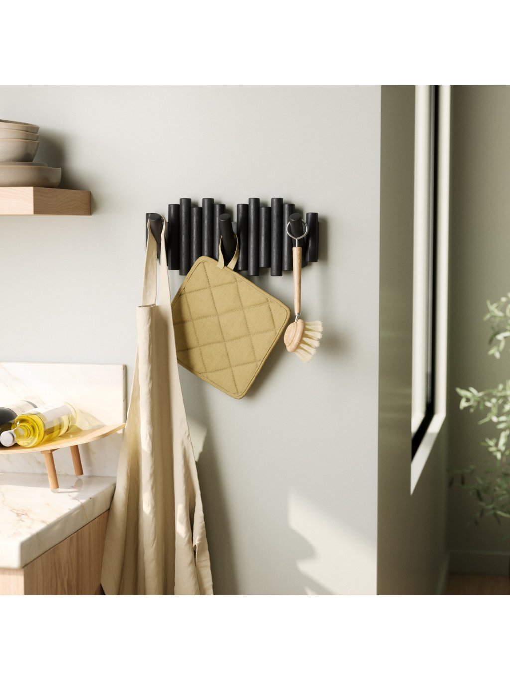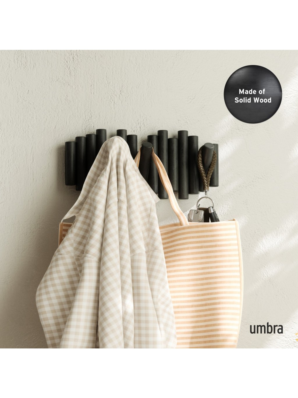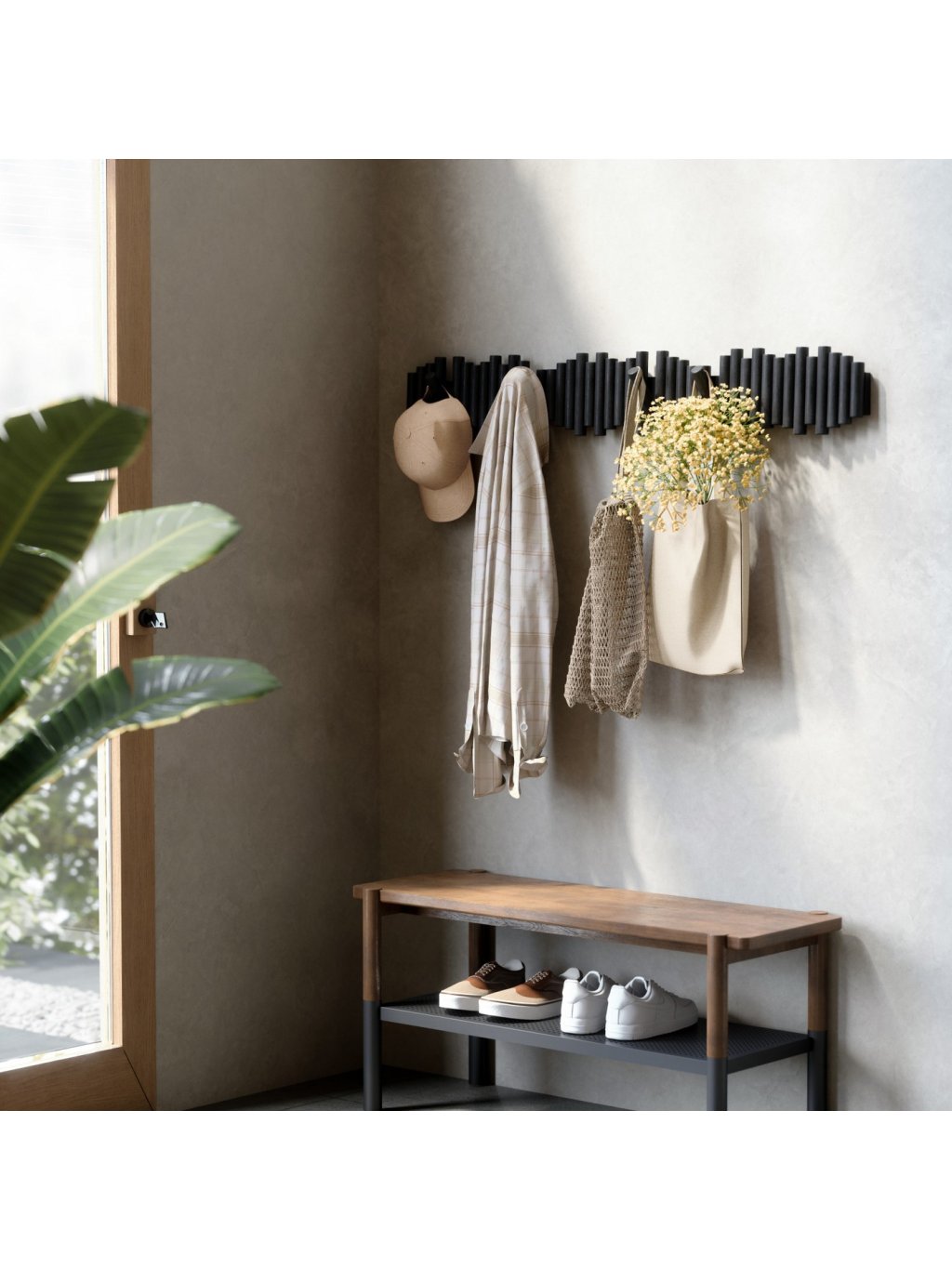 Umbra Picket je viac než len vešiak - je to dizajnový prvok, ktorý pridá vášmu interiéru hrejivosť a charakter. Je vyrobený z krásne opracovaného borovicového dreva a ponúka päť sklopných háčikov, z ktorých každý unesie až 2,3 kg. Keď háčiky nepoužívate, jednoducho ich sklopíte a Picket sa premení na elegantnú drevenú dekoráciu s čistým profilom. Perfektný do predsiene, spálne alebo aj kancelárie. Vďaka jedinečnej kresbe dreva je každý kus originál a môžete ho kombinovať aj vo viacerých kusoch na vytvorenie praktického a dekoratívneho usporiadania na stene.