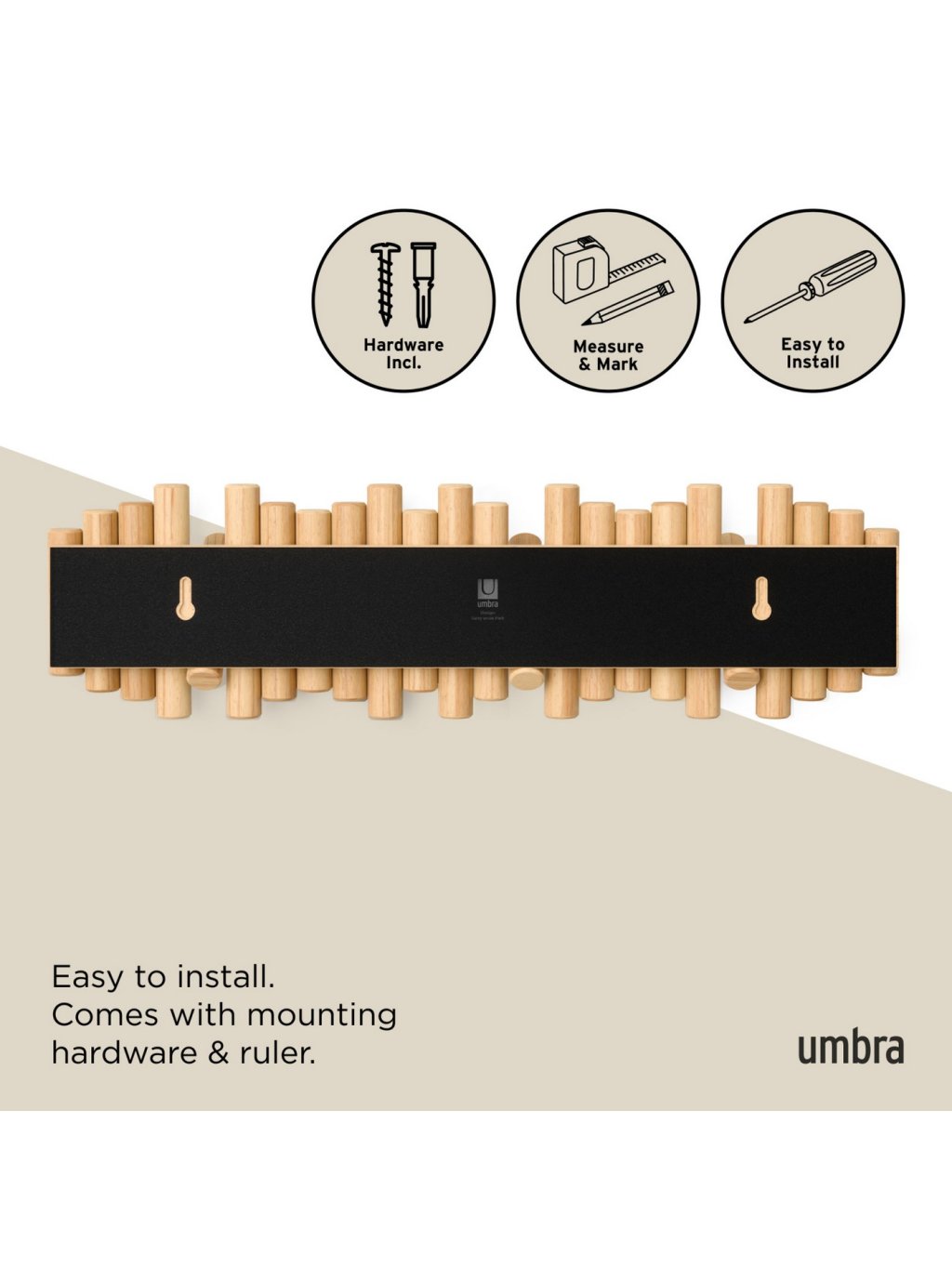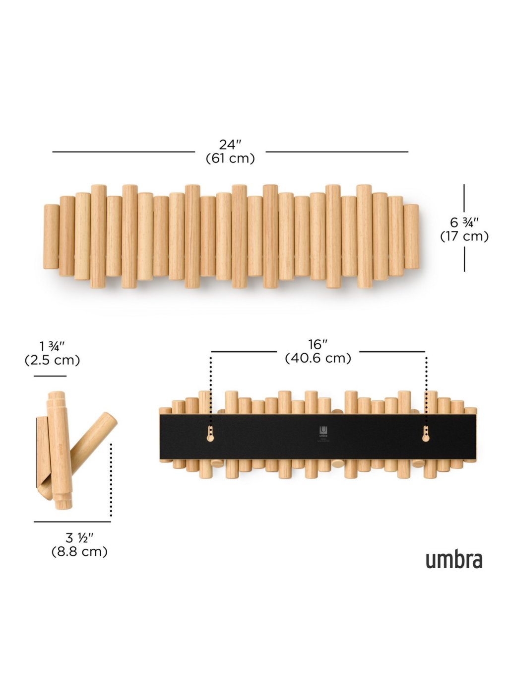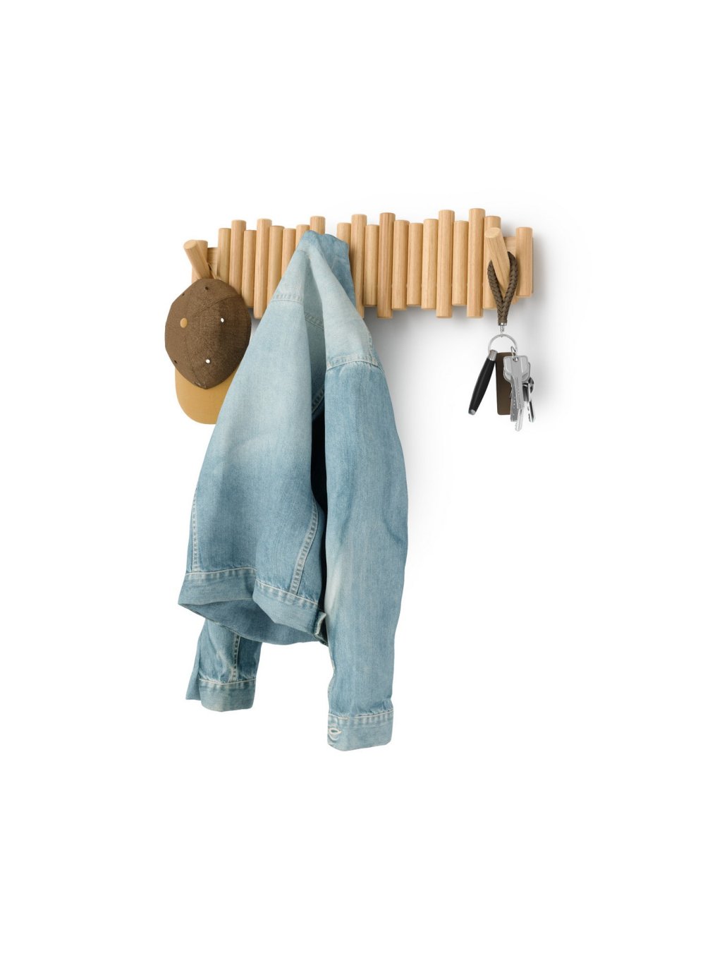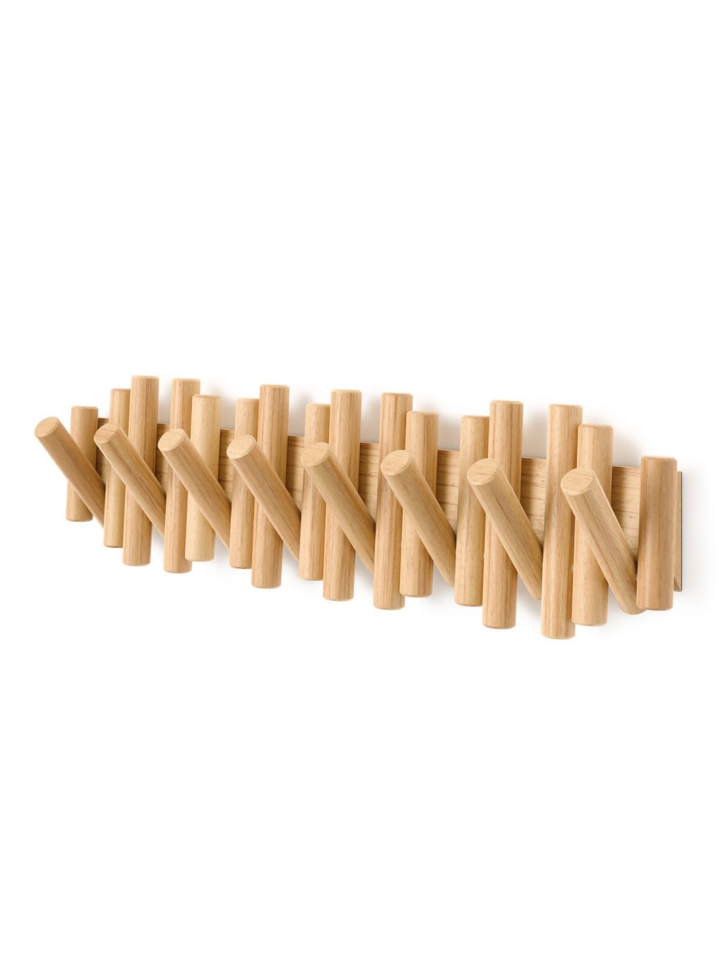 Umbra Picket predstavuje dokonalú rovnováhu medzi designom a funkčnosťou. Ponúka elegantný spôsob, ako udržať váš domov prehľadný a pritom štýlový. Každý kus z pravého dreva je originál, ktorý dodá vášmu priestoru charakter a útulnosť, zatiaľ čo praktické výklopné háčiky prinášajú maximálnu využiteľnosť v minimálnom priestore.