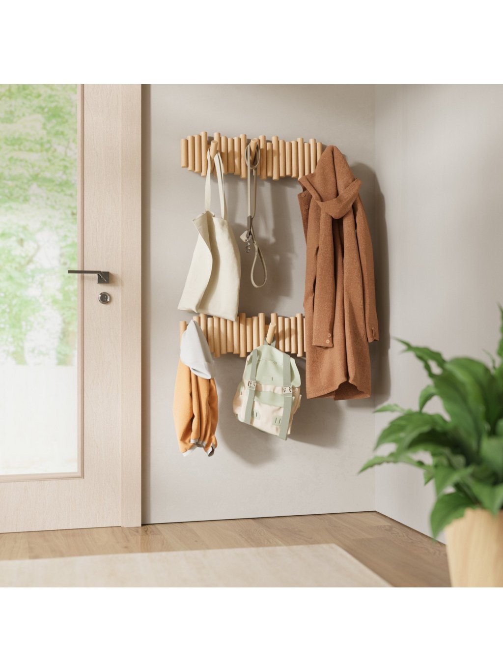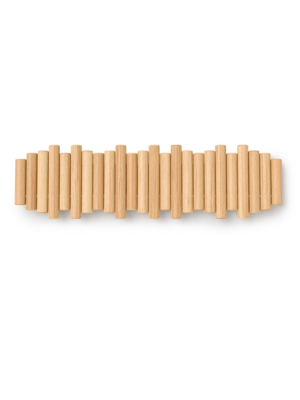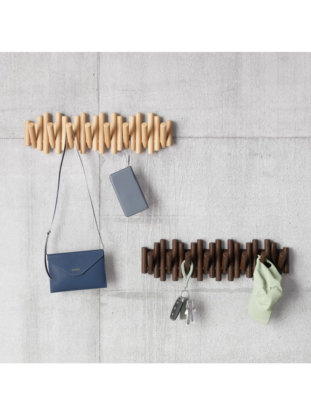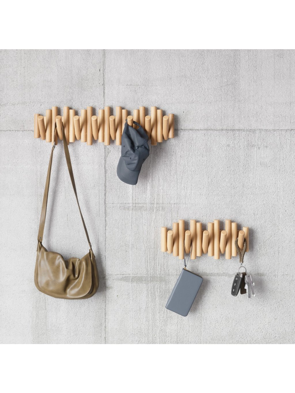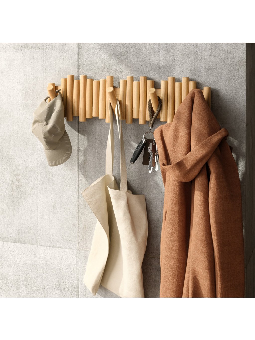 Umbra Picket predstavuje dokonalú rovnováhu medzi designom a funkčnosťou. Ponúka elegantný spôsob, ako udržať váš domov prehľadný a pritom štýlový. Každý kus z pravého dreva je originál, ktorý dodá vášmu priestoru charakter a útulnosť, zatiaľ čo praktické výklopné háčiky prinášajú maximálnu využiteľnosť v minimálnom priestore.