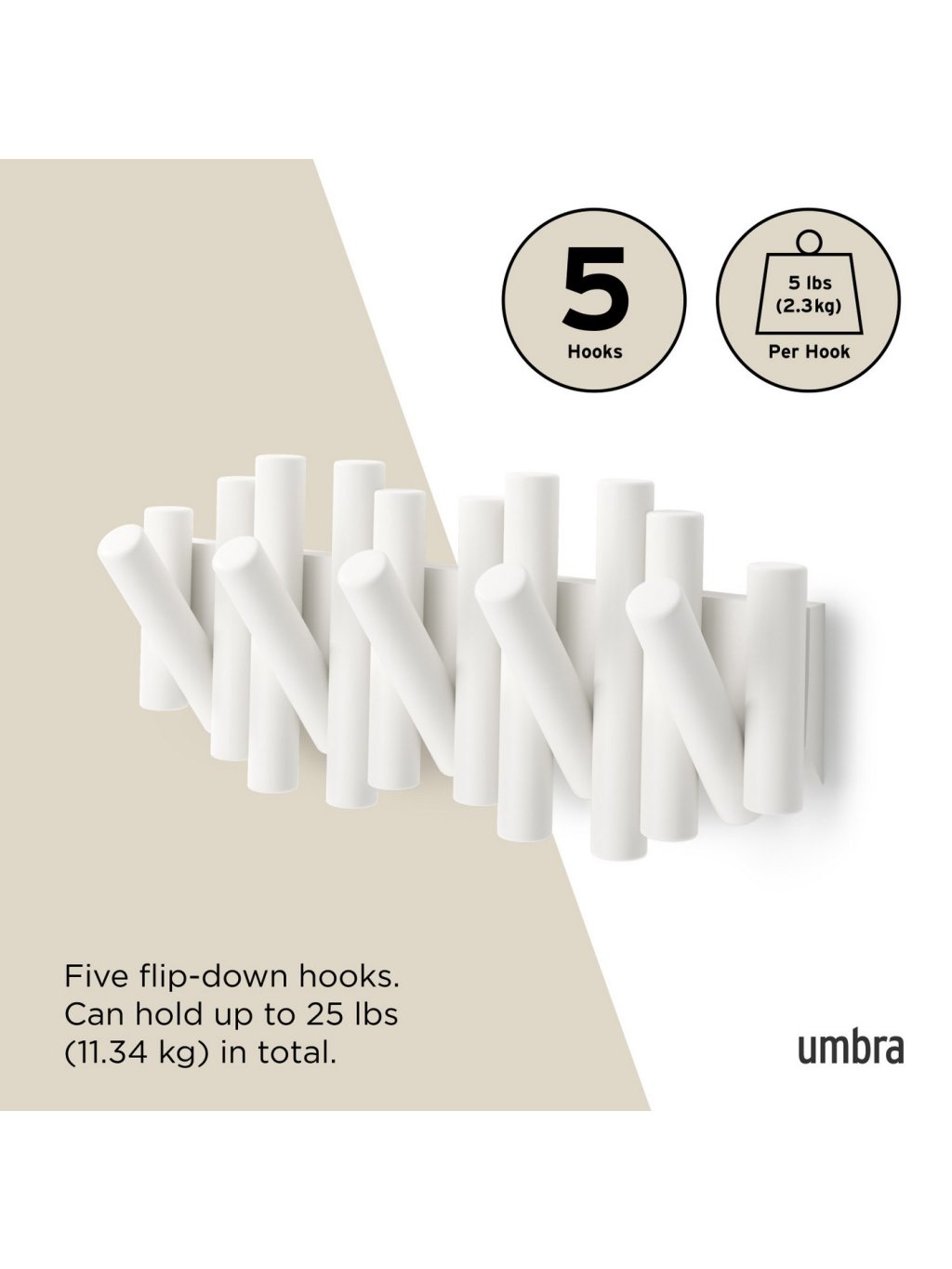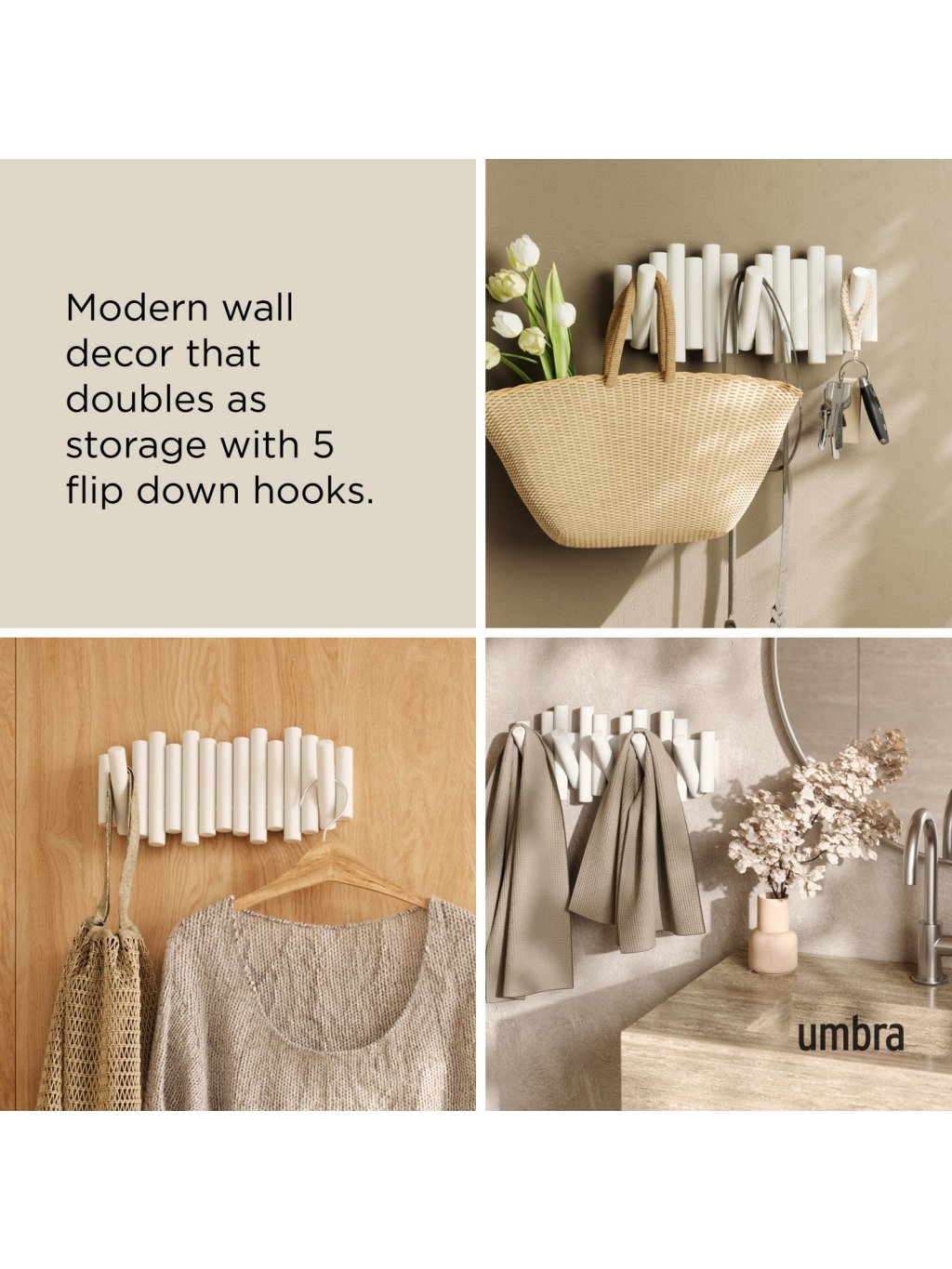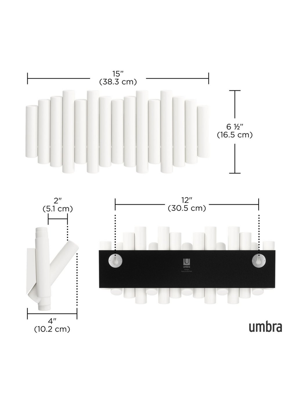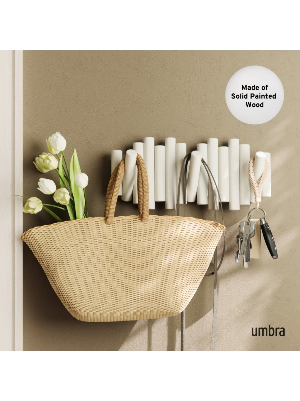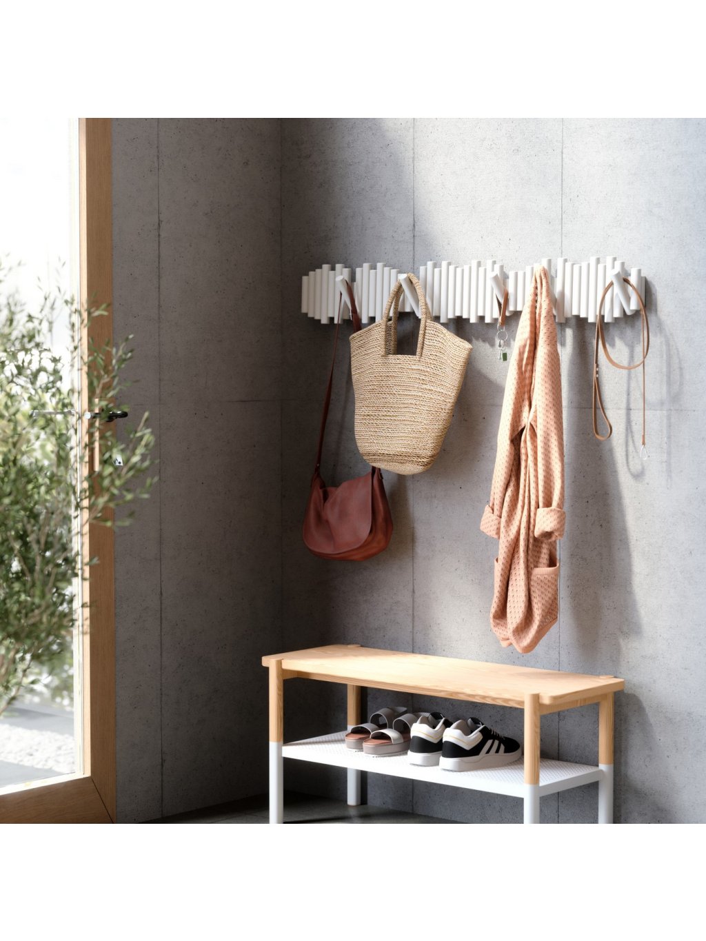 Umbra Picket je viac než len vešiak - je to dizajnový prvok, ktorý pridá vášmu interiéru hrejivosť a charakter. Je vyrobený z krásne opracovaného borovicového dreva a ponúka päť sklopných háčikov, z ktorých každý unesie až 2,3 kg. Keď háčiky nepoužívate, jednoducho ich sklopíte a Picket sa premení na elegantnú drevenú dekoráciu s čistým profilom. Perfektný do predsiene, spálne alebo aj kancelárie. Vďaka jedinečnej kresbe dreva je každý kus originál a môžete ho kombinovať aj vo viacerých kusoch na vytvorenie praktického a dekoratívneho usporiadania na stene.